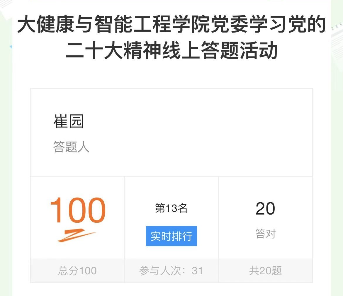 为进一步推动党的二十大精神广泛深入为广大师生所了解和掌握,11月21日-24日yl23455永利集团开展“党的二十大精神线上答题活动”,公司师生共计200余人参加答题。