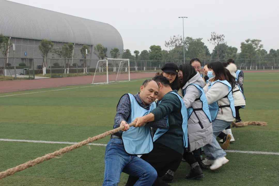 活动开始前,所有参与人员被分成两个队伍。大家穿上各自的队服,大声喊出整齐响亮的口号,在掷地有声的欢呼中,活动正式开始。活动包括了拔河比赛、踩砖块接力以及“对抗球”三个游戏部分。拔河比赛中,队员们一个个摩拳擦掌,排好阵势。当比赛的哨声响起,只见参赛的师生们紧握长绳,一同用力往后拉,踩准节奏,聚力于绳,铆足了劲拼命往后拉。哨子声、呐喊声此起彼伏,尤其在难分胜负的时候,大家也毫不退却,咬紧牙关,坚持到底。一根麻绳,系住凝聚力,拧住拼搏风采。