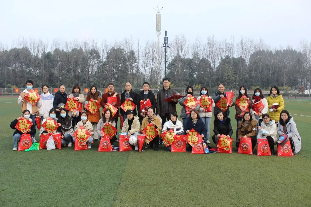 虽是在岁末寒冬,但活动当天微风和煦,所有人心都凝聚在一起,温暖了师生们的心扉。足球场周围栏杆上挂着的小老虎剪纸憨态可掬,红澄澄的福字暗示着新的一年即将到来,冬至开运迎新春,喜庆的节日氛围弥漫着成医校园。