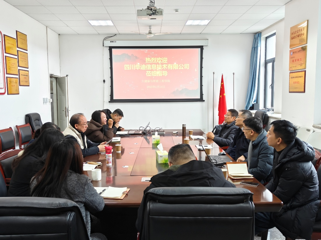 2月24日上午,四川华迪信息技术有限公司董事长朱军一行来院交流洽谈合作事宜。公司副经理陈煜、数字健康产业研究院经理梅挺,相关教研室主任、专业负责人、行政科室人员参加会议。