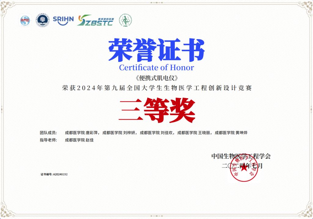 第九届全国老员工生物医学工程创新设计竞赛全国总决赛于2024年7月21-26日在海南省三亚市举行,该项赛事由中国生物医学工程学会主办,海南大学、三亚崖州湾科技城管理局等协办。公司yl23455永利集团的参赛团队历经数月筹备,通过线上预赛、线下预赛与决赛等多轮选拔,成功从全国3000多支参赛队伍中脱颖而出。2022级生物医学工程专业左晓铃团队荣获全国二等奖,2022级生物医学工程专业唐彩萍团队荣国全国三等奖。