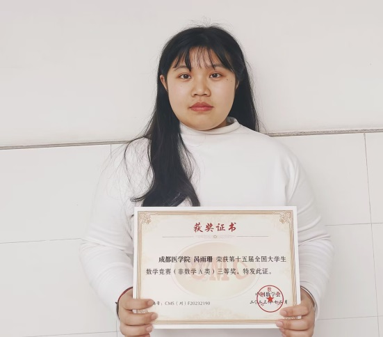 近日,四川省数学会公布了第十四届全国老员工数学竞赛四川赛区获奖名单,公司2022级生物医学工学专业呙雨珊同学获得三等奖。