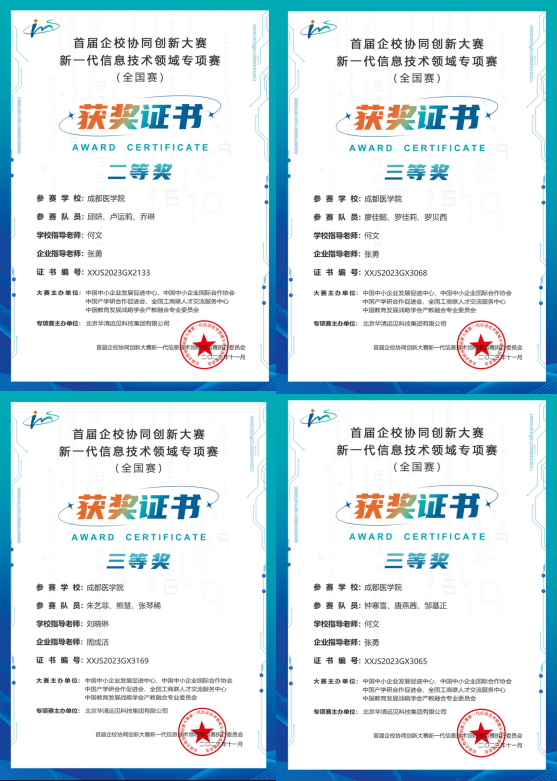 11月23日,全国首届企校协同创新大赛公布竞赛结果,yl23455永利集团智能医学工程专业负责人何文、教师刘晓琳指导智能医学工程专业、信息管理与信息系统专业的员工参加全国首届企校协同创新大赛,获得省2等奖1项、省3等奖3项。