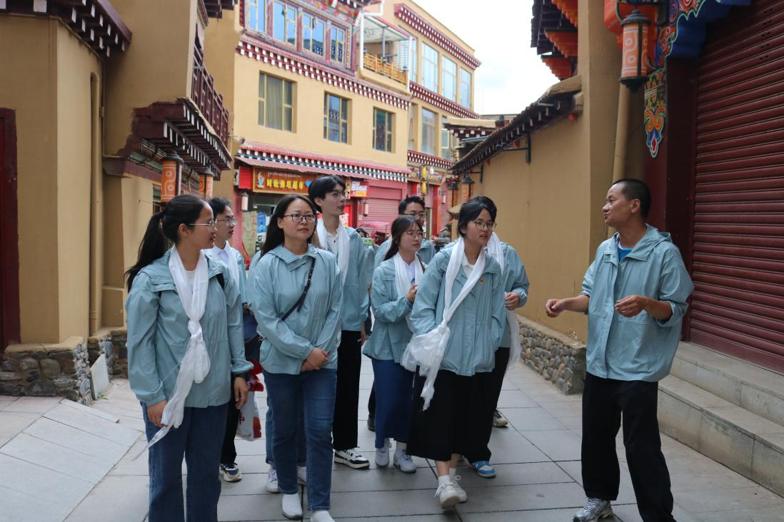 实践团先后前往了根布夏古城和格萨尔王城。其中,古城核心区域根布夏于2019年被列入第五批中国传统村落名录。格萨尔王城则得名于藏族史诗英雄格萨尔王,成为了解世界最长史诗——格萨尔文化的绝佳之地。漫步在古老的街巷间,实践团成员不仅深切感受到了浓郁的藏族文化氛围,还对中华文明多元一体的格局有了更深刻的理解和感悟。