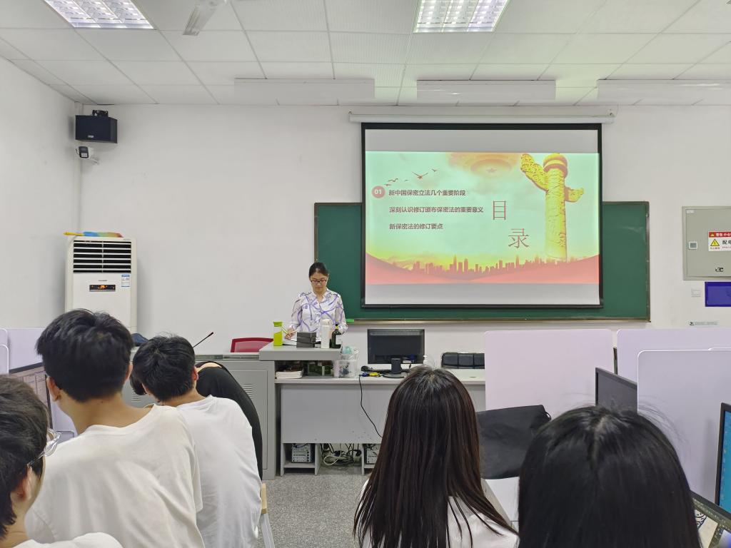 周彦宏则重点回顾了保密法颁布及两次修订的过程,和全体人员共同学习、深刻领悟修订颁布保密法的重要意义。周老师讲到当前,国内外形势多变,科技发展迅速,国家安全和保密工作面临多重新问题新挑战。此次保密法修订完善了一系列保密管理制度,严格规范保密行政许可、行政检查、案件查处等行政行为;同时,从法律制度上明确了进一步加强党对保密工作的领导,彰显了保密法注重党管保密、依法管理、积极防范、突出重点等精神实质和主要内容。希望同学们在日常的朋友圈发布、网络动态的发言、传送员工基本信息等各方面加强保密意识和安全意识。