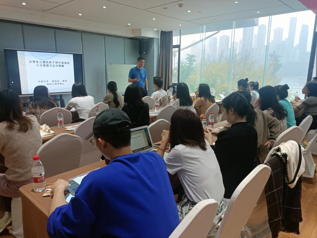 培训首日,唐海波教授就老员工心理危机干预面临的困惑与应对策略做了详细讲解,结合精神卫生法,和在场的辅导员老师进行互动讨论。唐教授针对具体的问题,包括“遇到严重精神障碍的员工能否立即送医就诊”、“什么情况下能够送危机员工住院治疗”、“什么情况下可以强制住院”、“辅导员能否办理入院手续”、“家长不配合办理该如何处理”、“员工的隐私保护”等,从精神卫生法的视角给出解决办法,并在培训最后给出能够快速识别员工心理危机的“高危人群识别表格(基于应激-素质模型)”,动员在场老师在校期间积极关注员工的心理健康。培训次日,赖海雄教授通过列举讨论高校心理危机实际案例,讲解辅导员在危机干预过程中要做到“兼顾生家校,融合法理情”,用心用理用情地解决员工心理危机事件。他强调辅导员要尤其注意在处理员工危机事件的过程中,对员工安全的保护。