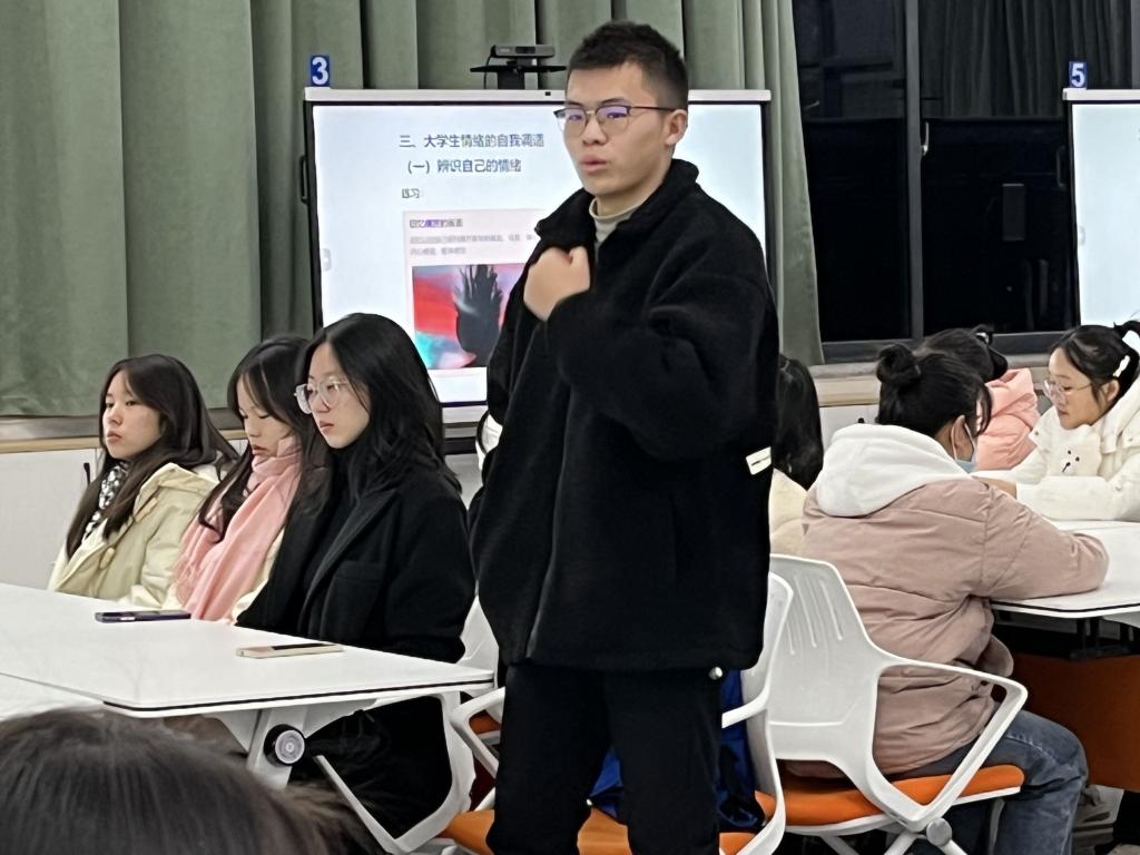 在班会的互动环节,同学们积极参与,分享了自己在进入大公司园以来经历的负性事件、当时所处的情绪以及自己的行为做法。杨浩老师对每个同学的分享都给予了认真的倾听和回应,并给予了一些建议和鼓励。