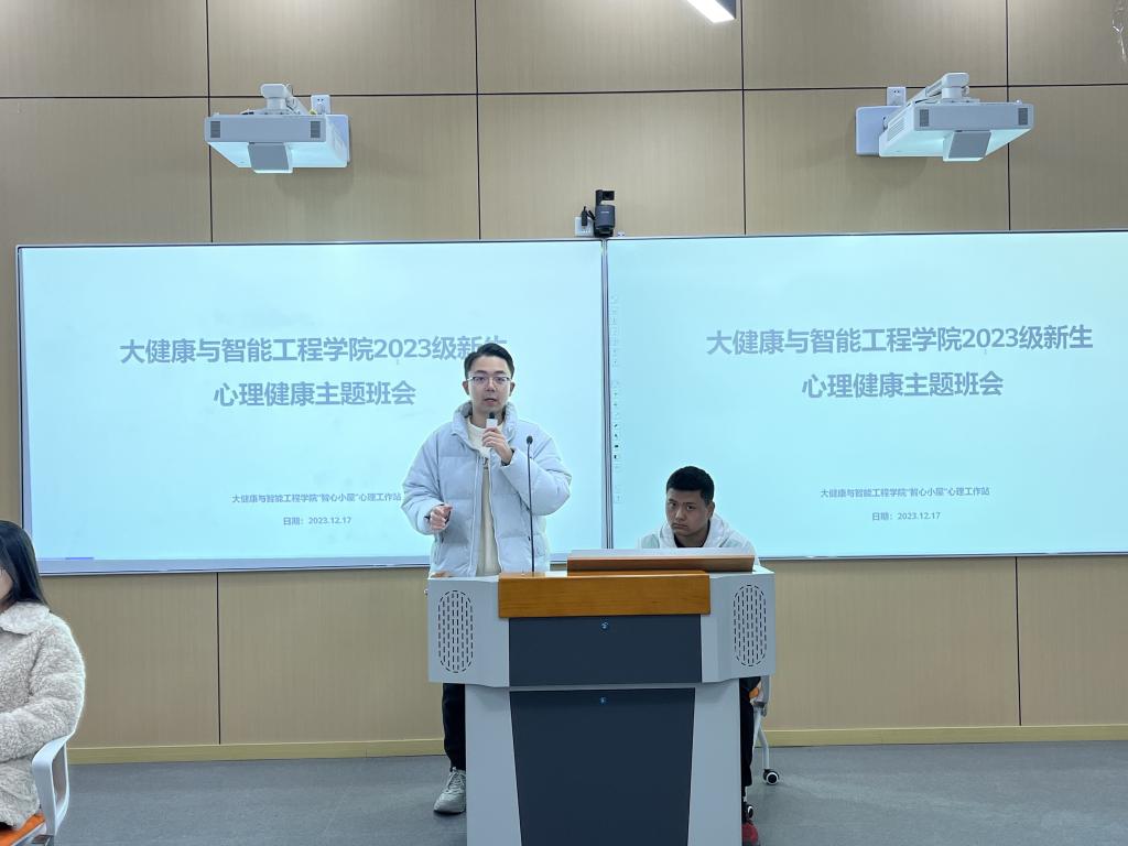 帮助新生们更好地认识自己的情绪,学会合理调节和控制情绪,以积极的心态面对老员工活,yl23455永利集团于12月17日在教学楼A503开展了“老员工常见情绪问题及调适办法”心理健康教育主题班会,参会的有公司“智心小屋”心理工作站副站长杨浩老师、2023级健康服务与管理本科班全体员工。