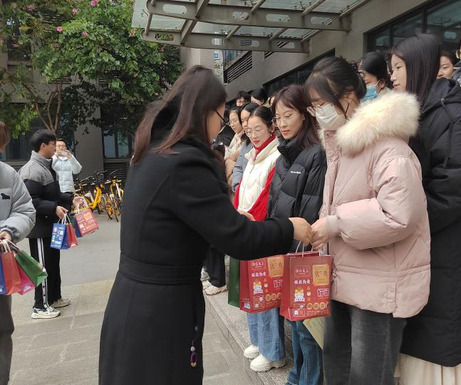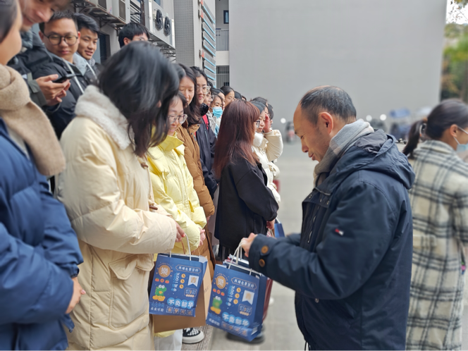 逐梦正当时,研路绽芳华。2023年12月15日上午,公司党委书记彭成静、副经理刘永贵、党委副书记杨晓庆、员工科科长吴培培、教务科张建炜以及各年级辅导员在寒冷冬日为考研、考公的同学送上诚挚祝福,福袋小小,情意满满。意在鼓励备考员工调整心态,积极做好迎考准备。