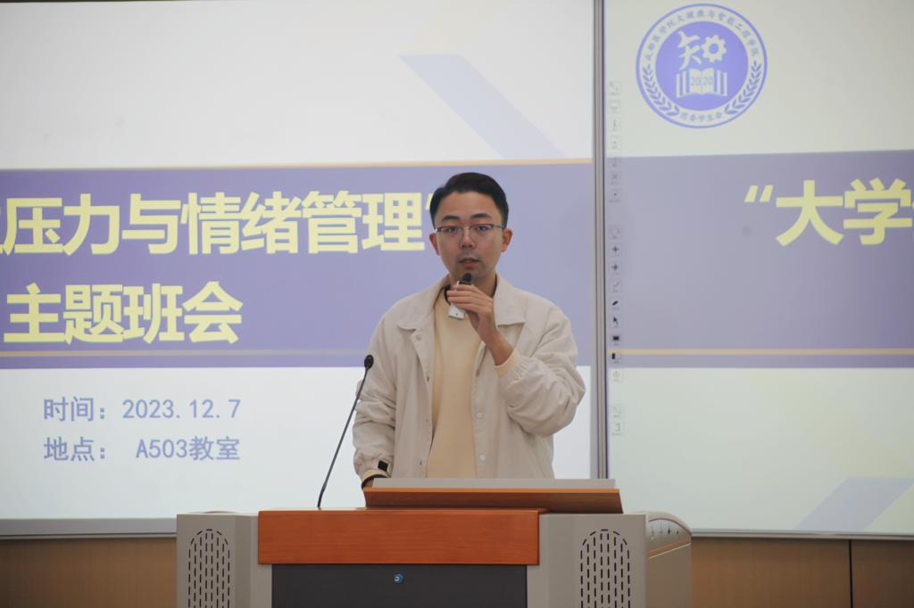 2023级新生辅导员杨浩师讲解了大一新生常见的压力与情绪管理问题,并对常见的压力事件和情绪困扰进行了解释分析,分享了心理咨询技能与情绪管理技巧。