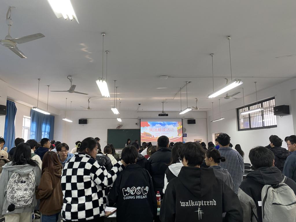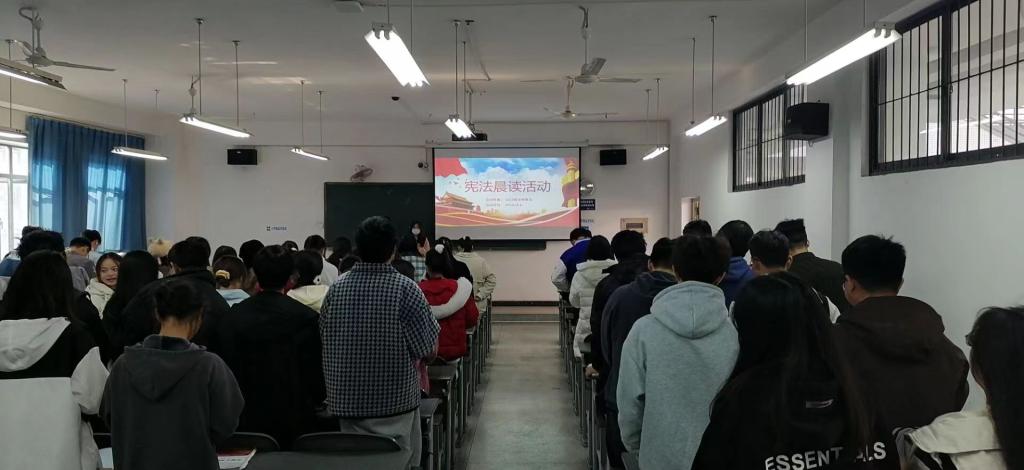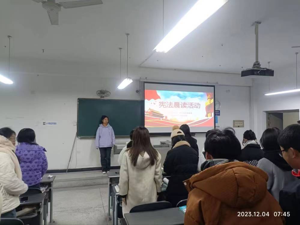 各班也在教室开展“宪法晨读”活动。同学们齐声朗读了宪法的部分条款,进一步提升法治观念和法律素养,厚植爱国主义情怀。