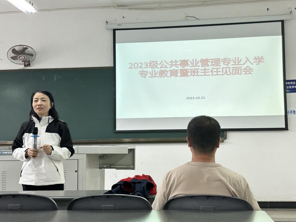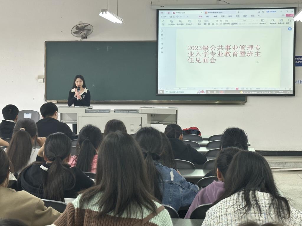 2023级公共事业管理本科班于10月16日在教学楼A201教室举行了专业思想班会,由专业负责人李淼晶老师主讲。李老师从公管导论、人才培养方案等方面进行了详细的讲解。在10月21日的学业教育班会上,班主任赵寒冰老师还邀请优秀的学长学姐为同学们进行了经验分享。