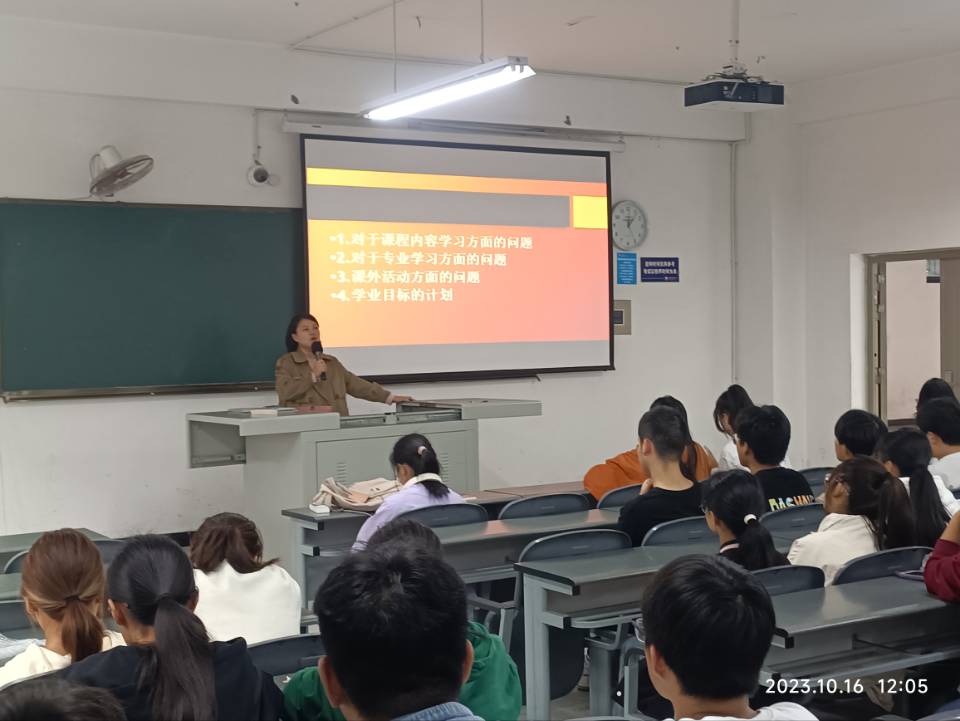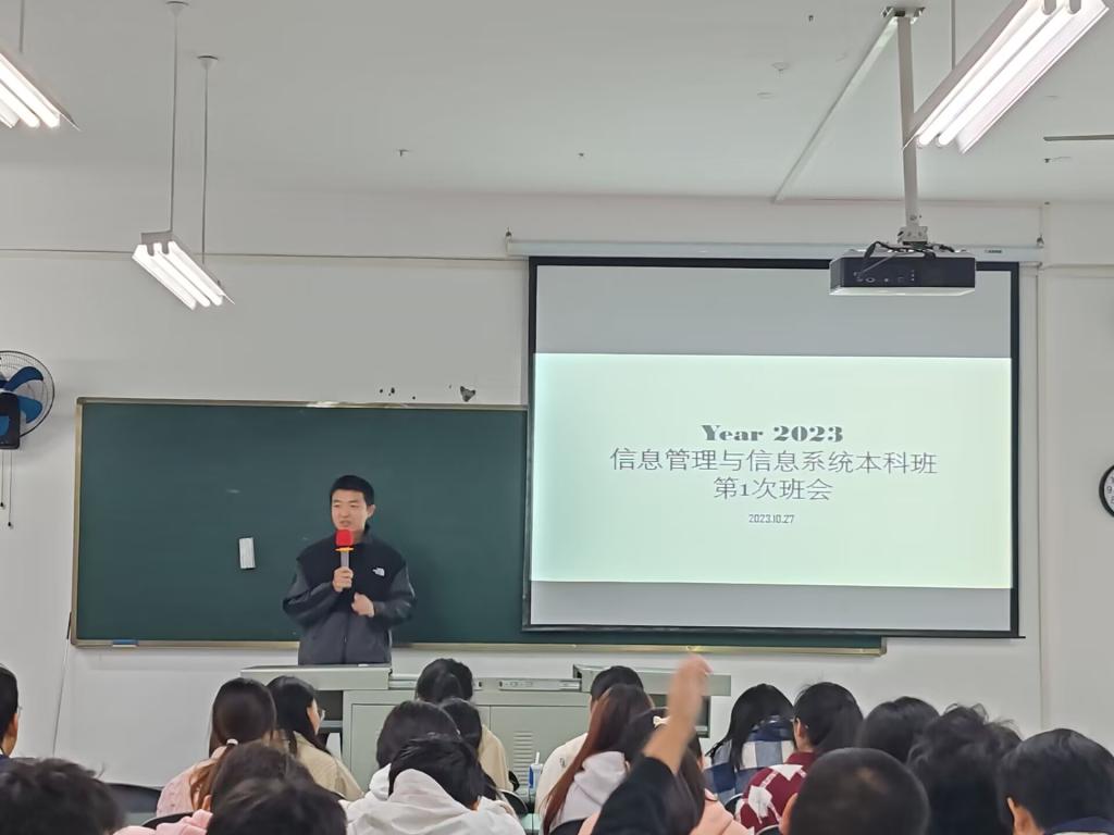 2023级信息管理与信息系统本科班于10月27日在教学楼B113教室举行了专业思想班会,由专业负责人崔园老师主讲。崔老师向同学们分享了大学期间所需的能力和学习方式,鼓励大家积极参与课外活动。同时,班主任杨泛舟老师也为大一新生开展了学业教育班会,提醒大家明确个人学习目标,纠正不良班风问题,激发同学们的学习热情。