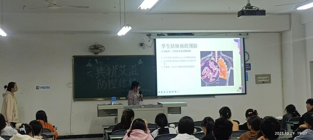 近日,2023级各班在健康联络员的组织下开展主题为“共抗艾滋,防控结核”的医疗健康知识宣讲活动。