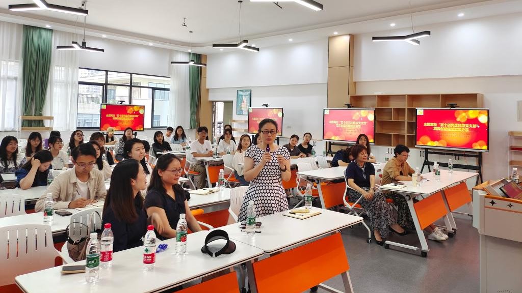 陈盼老师对全国高校“百个研究生样板党支部”的培育创建背景做了详细介绍,同时重点分享了研究生党支部的工作思路和主要做法。她说,研究生党支部的工作原则是坚持以系统思维推动“党支部建设工作”和“研究生人才培养工作”深度结合。工作目标是依托外语专业优势,以一流的研究生党支部建设,培育担当民族复兴大任、具有国际竞争力的优秀外语人才。在实际工作中,按照“七个有力”的基层党支部建设标准,通过“七抓七促”,推动研究生党支部建设标准化规范化。同时,以“旗帜工程”项目建设为依托和“公共外交”系列活动为平台,推动“党建团建”同部署,建立“党建带团建”的“同心圆”运行模式。