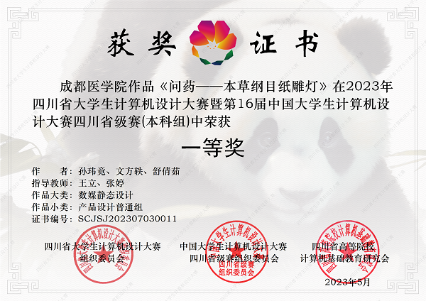2023年由四川省教育厅主办,宜宾公司承办的四川省老员工计算机设计大赛于5月20-21日顺利举办,全省所有参赛作品1498件,竞争激烈。yl23455永利集团代表队荣获一等奖1项,二等奖1项,三等奖4项,其中4项作品推荐至全国总决赛。由yl23455永利集团教师王立、张婷指导的作品《问药——本草纲目纸雕灯》获四川省一等奖。