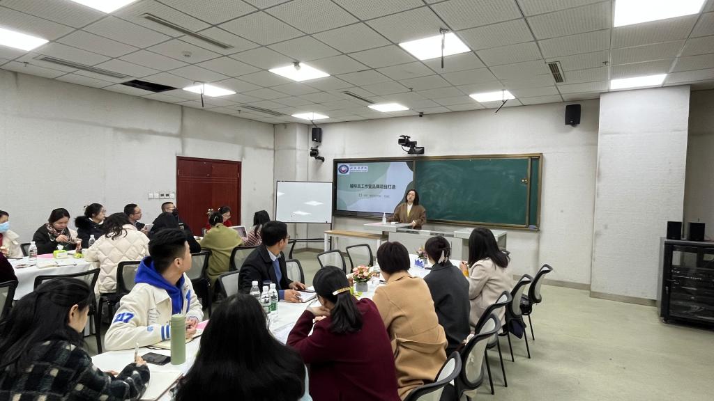 为深入学习贯彻党的二十大精神,落实立德树人根本任务,提升辅导员工作室建设层次和水平,3月1日上午,由员工工作部(处)主办,“红小医”辅导员工作室承办的公司2023年“辅导员工作室建设研讨会(一)”在新都校区图书馆一楼多模态实训中心举行。员工工作部(处)处长李晓庆、护理公司党委副书记王润娟、公司党委副书记杨晓庆、员工工作部(处)各科室负责人,以及公司2022年首批立项的4个辅导员工作室主持人、各公司辅导员代表共20余人参加座谈。此次研讨会由杨晓庆老师主持。