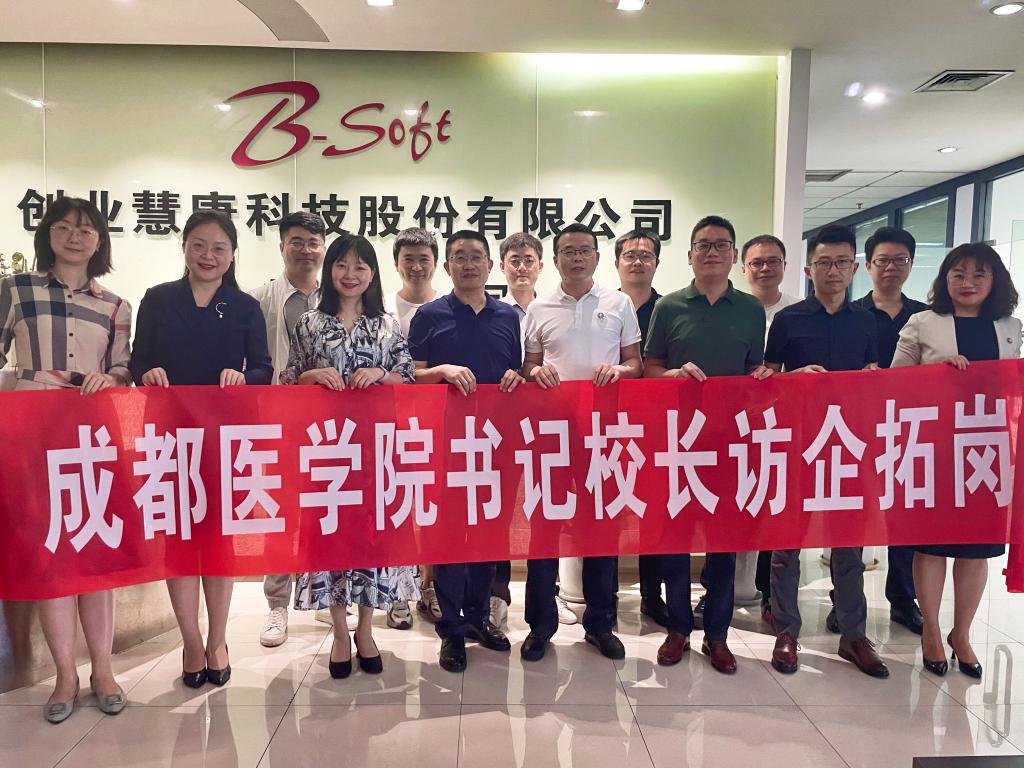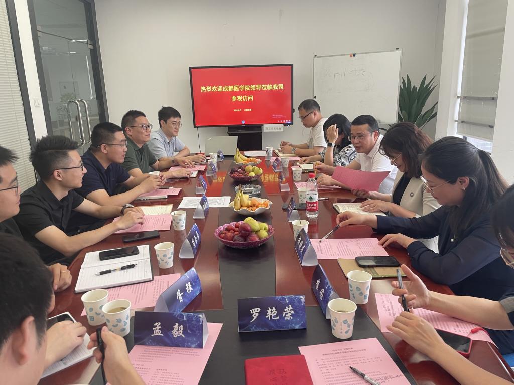为深入贯彻落实党中央、国务院关于“稳就业”、“促就业”决策部署,进一步深化校企合作,促进毕业生更加充分高质量就业,5月25日,成都医公司党委常委、副董事长王计生,校员工部(处)处长李晓庆、公司党委书记彭成静、党委副书记杨晓庆以及公司各科室负责人一行到创业慧康科技股份有限公司开展访企拓岗促就业专项行动。创业惠康科技股份有限公司川渝大区副总经理唐红、周恒、相关职能部门负责人、员工代表等全程参与接待与座谈。