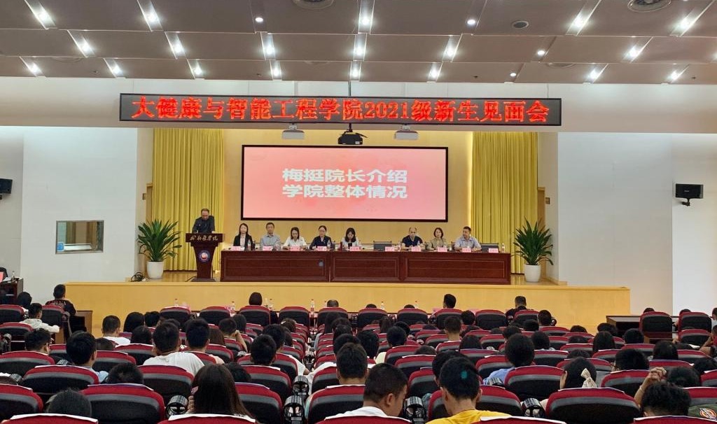 2021年9月16日下午14:00,2021级新生见面会在学术交流中心准时举行。公司党委书记彭成静,经理梅挺,副经理刘永贵,党委副书记杨晓庆,各教研室主任、专业负责人、新生班主任、各年级辅导员以及2021级全体新生参加此次见面会,会议由公司党委副书记杨晓庆主持会议。