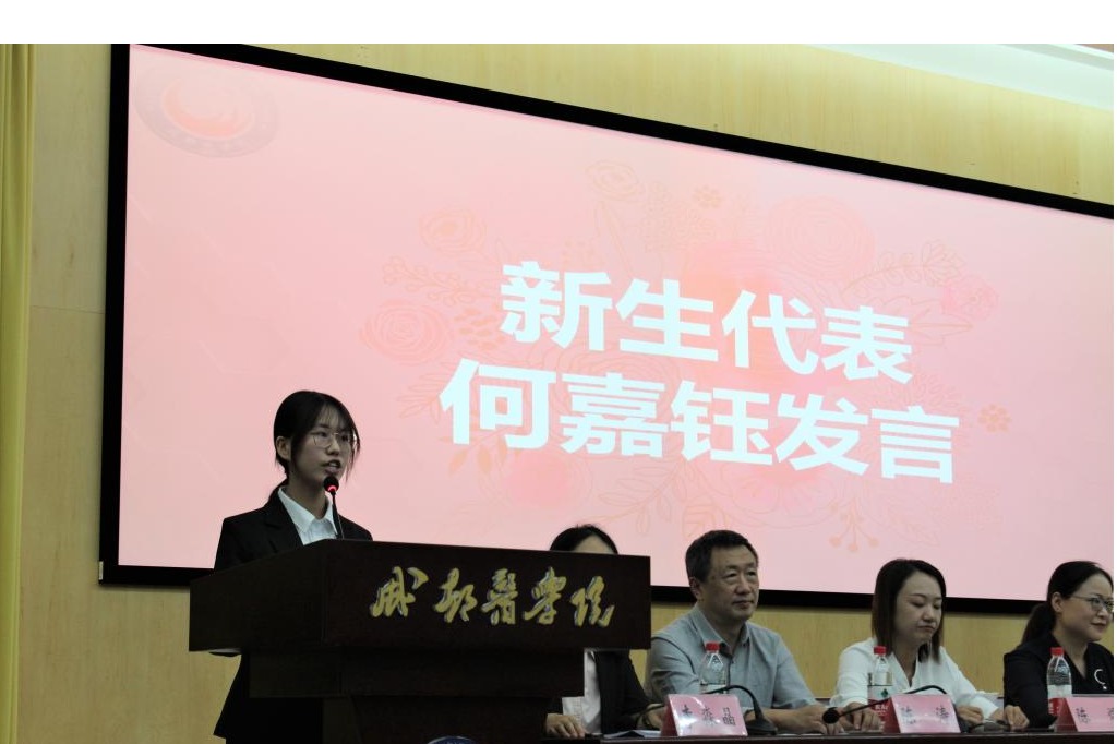 老生代表袁佳妮分享了其老员工活的感悟心得,希望新同学能够以梦为马,不负韶华,为成为更好的自己而努力。新生代表何嘉钰赞同新生要学会尽快融入校园生活,适应大学环境,在以后的学习中应该惟真求新、自律自省、努力完善知识结构,不负寒窗十二载。
