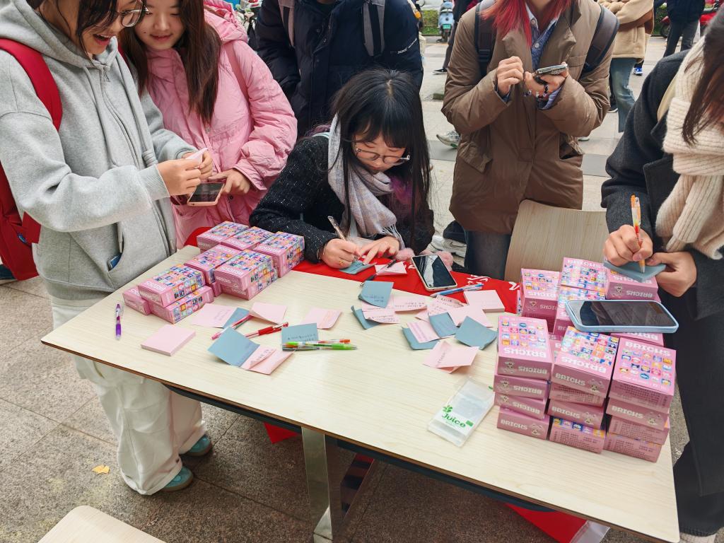 尽管初冬的寒意逐渐笼罩校园,但同学们参与的热情丝毫未减。在活动现场,大家纷纷在便利贴上书写自己的烦恼,同时,为那些同样被烦恼所困扰的同学提供了温馨的建议。这些充满关怀与善意的文字,不仅为解决各自的难题贡献了力量,更在无声中拉近了同学们心灵之间的距离,构建起了一座温暖的桥梁。