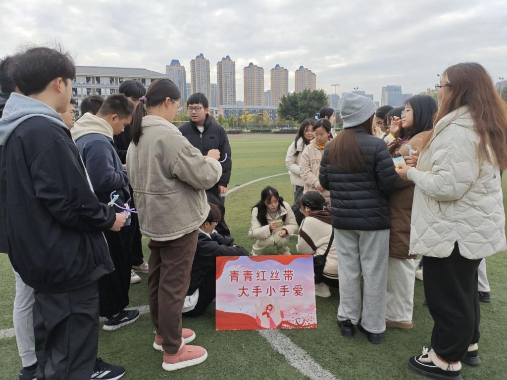 活动期间,同学们积极参与“用爱预‘艾’,平等友爱”的游戏活动,展现出团队协作能力和反应速度。他们每2人一组,在30秒内倒转关于“艾滋病”的词语顺序出题,并准确说出至少5个词语的正确顺序。同时,“爱共筑希望之路”活动中,同学们用签字笔在便签纸上书写2条防艾小建议并和其他同学分享,展现出大家对艾滋病的认识和关注。