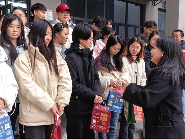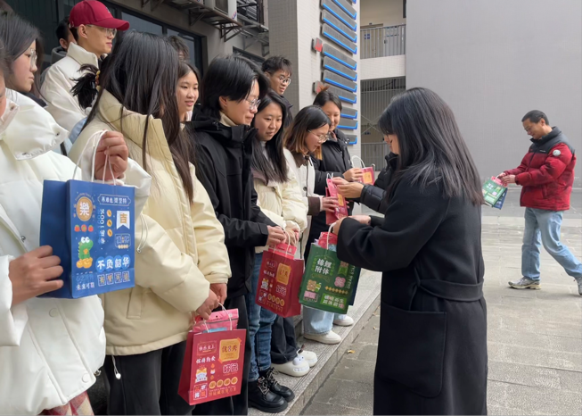 同学们接过福袋时,脸上满是感动和惊喜。一位正在备考研究生的同学感慨地说:“最近压力确实很大,但收到老师们的祝福后,我感到重新充满了动力,我一定要更加努力!”这些福袋不仅承载着物质上的关怀,更代表着公司对学子们的深情祝福和坚定信任,让同学们在追逐梦想的道路上感受到温暖和支持。