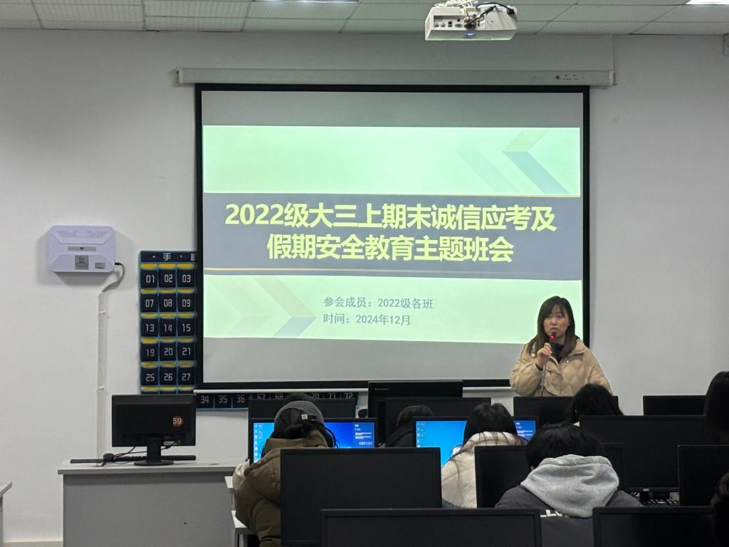为提升员工的诚信应考意识和假期安全防范能力,yl23455永利集团于2024年12月23日至27日在教学楼和实验室机房成功举办了期末诚信应考及假期安全教育主题班会。此次活动由公司各年级辅导员负责组织,覆盖全院全体员工。