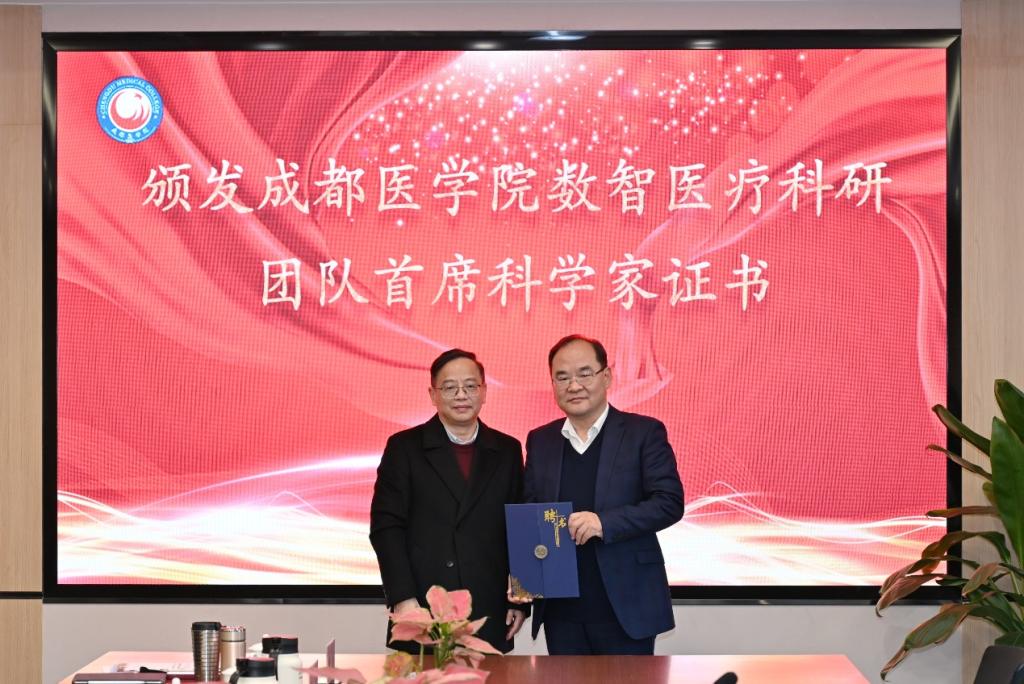 挂牌仪式后,潘克俭为孔德兴颁发了yl23455永利集团数智医疗科研团队首席科学家证书,进一步加强了公司在科研领域的专家力量。