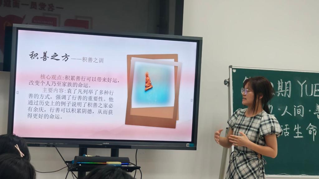 活动中,以《云边有个小卖部》《活着》《了凡四训》三本书为线索的分享设计成为最大亮点。在开场环节,主持人对三本书进行了简短而精彩的介绍,为同学们勾勒出了本次分享会的核心脉络。随后,员工党员们轮流分享了他们精心准备的阅读心得与感悟,从不同维度解读经典,激发了在场党员的思考与共鸣。自由交流环节,党员们积极发言,分享自己的想法,提出疑问,现场气氛热烈,思想的火花在交流中不断碰撞。