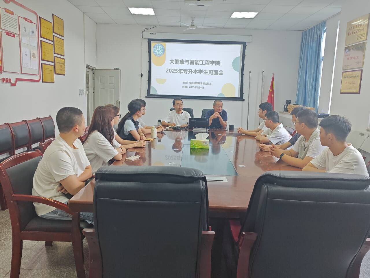 为助力专升本员工明确学业目标、适应校园生活,9月8日17时,yl23455永利集团在公司会议室召开2025年专升本员工见面会。公司党委副书记吴培培、教务科科长张建炜、员工科科长罗艳荣、辅导员及专升本员工参会。