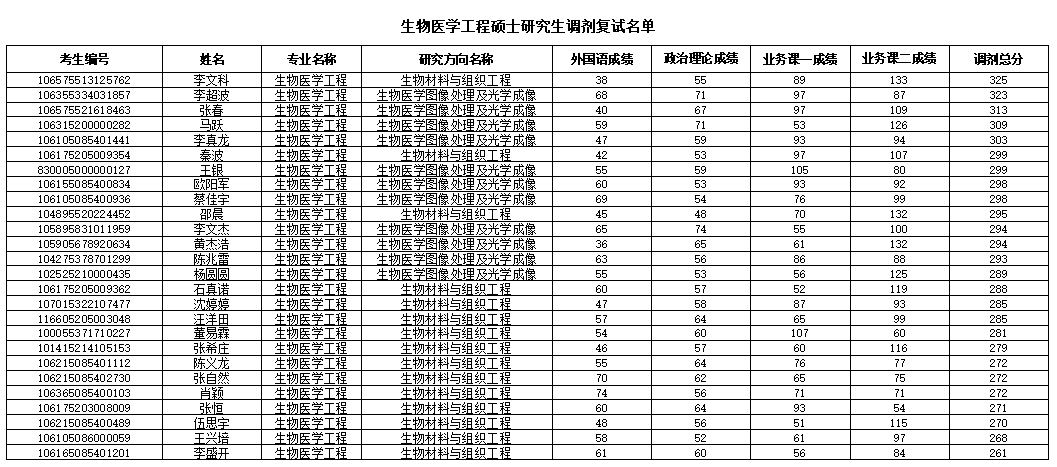 生物医学工程硕士研究生调剂复试名单.xlsx